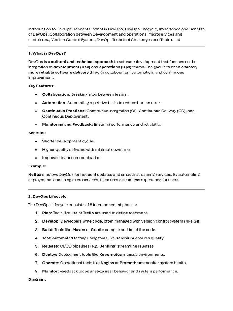 containers., Version Control System, DevOps Technical Challenges and Tools used.