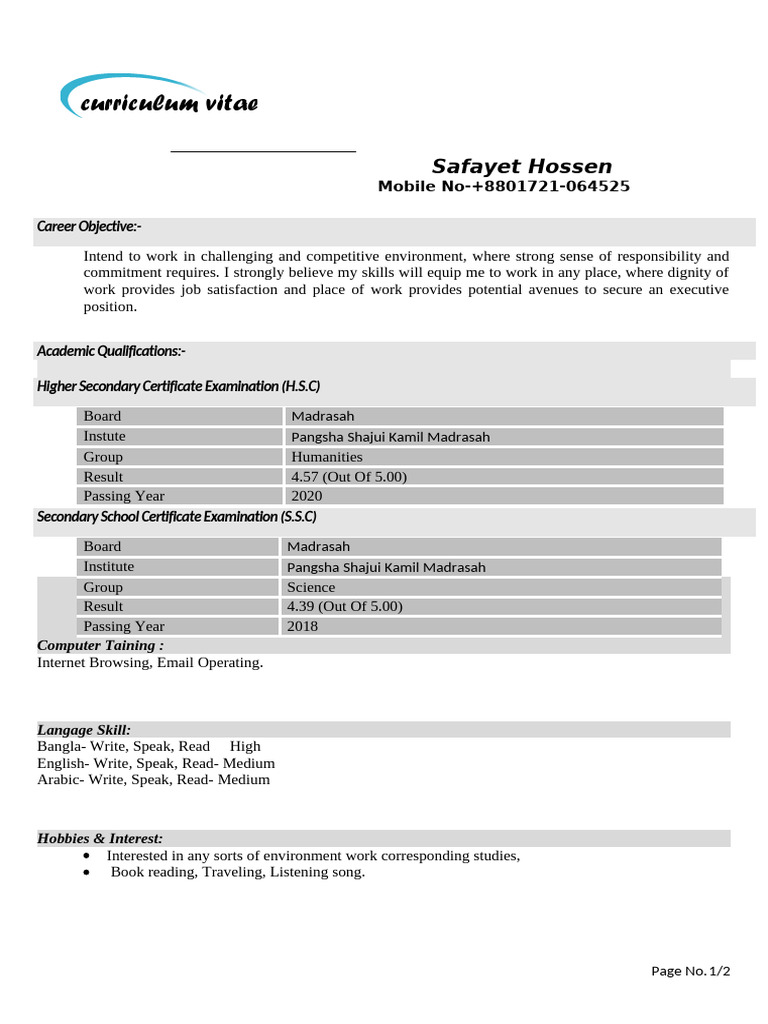 Strictly declare that information I have supplied in the resume is correct. If enrolled, I shall confirm the