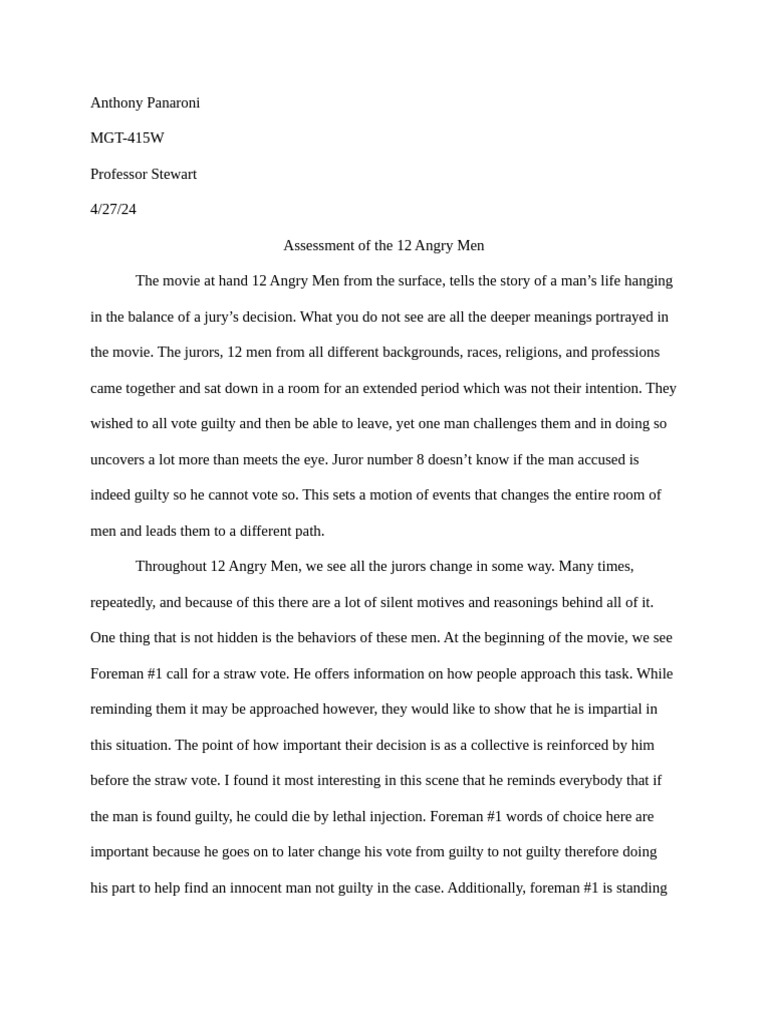 Throughout 12 Angry Men, we see all the jurors change in some way. Many times,