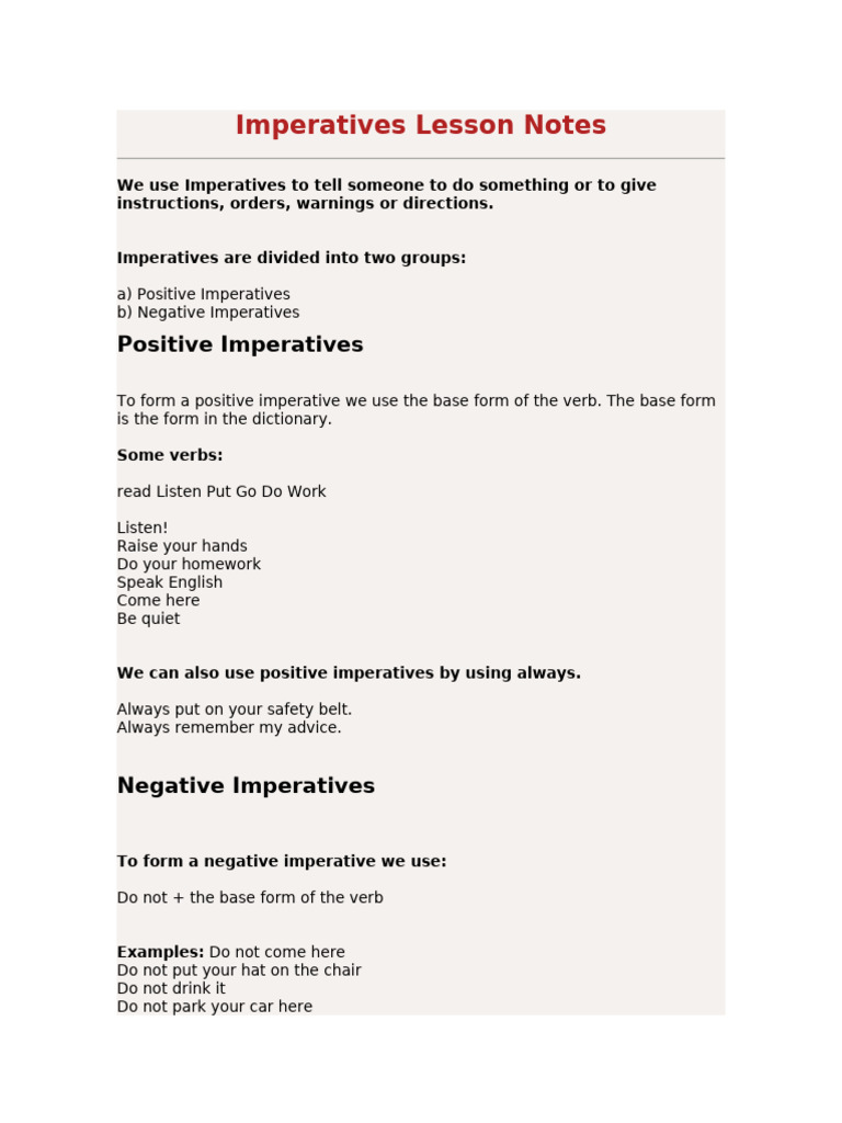 Home >> English Grammar Lessons - Beginners ESL Lessons >> Imperatives
