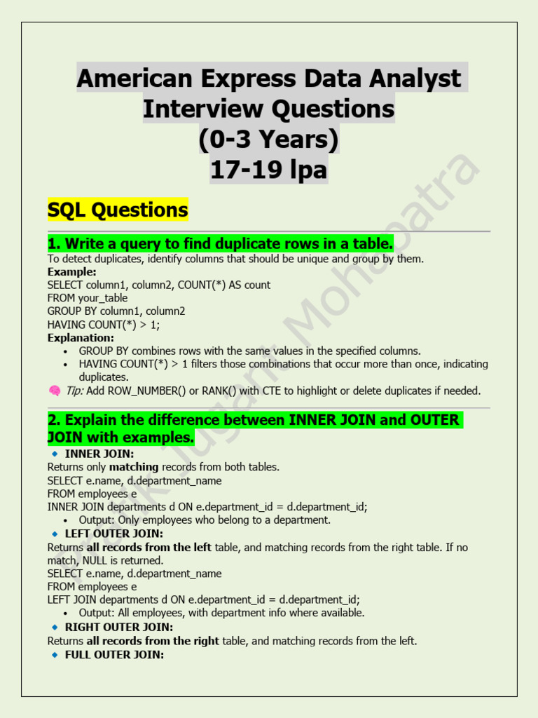 Tip: Add ROW_NUMBER() or RANK() with CTE to highlight or delete duplicates if needed.