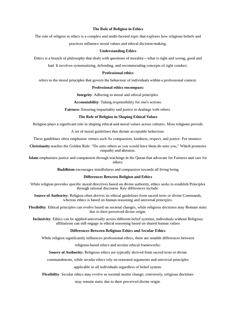 The Role of Religion in Shaping Ethical Values