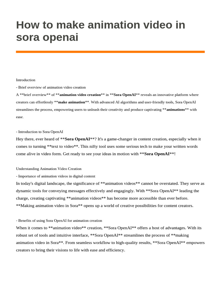 - Encouragement for readers to explore animation video creation in Sora OpenAI