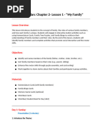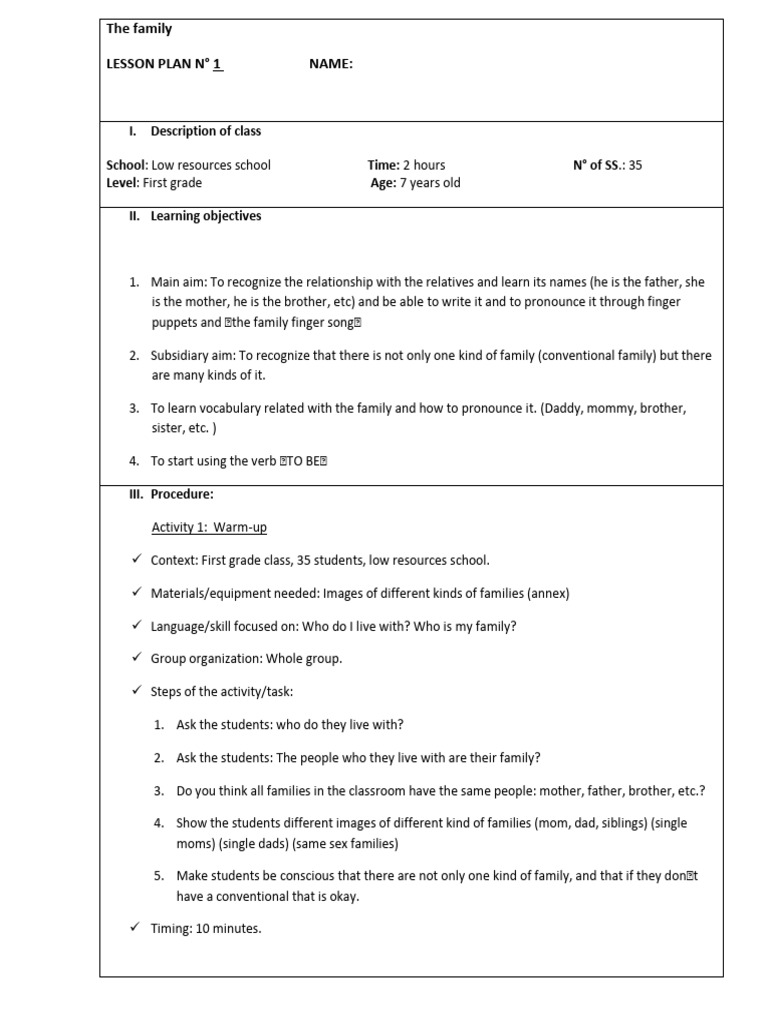 Language/skill focused on: Recall family vocabulary. Greetings: Hello, goodbye. Ask questions: Who