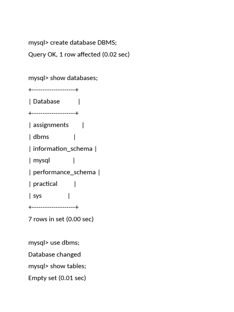mysql> use dbms;