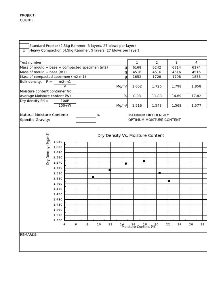 x Heavy Compaction (4.5kg Rammer, 5 layers, 27 blows per layer)