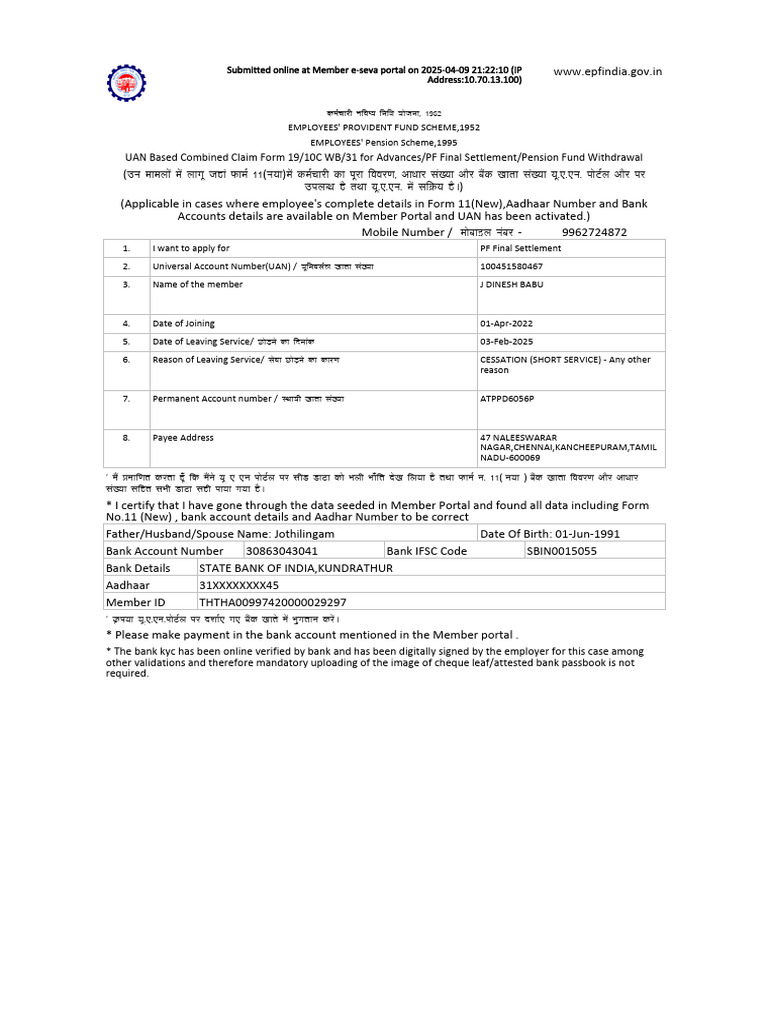 Submitted online at Member e-seva portal on 2025-04-09 21:22:10 (IP www.epfindia.gov.