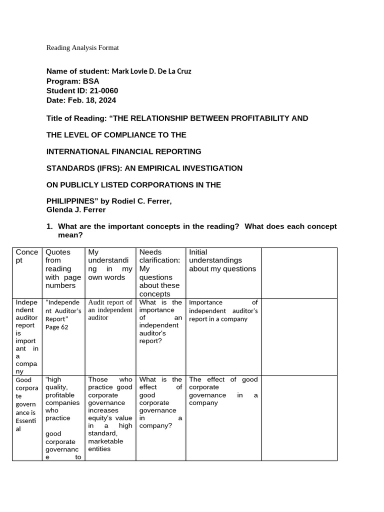 Reading Analysis Format