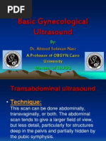 May require full bladder (displace bowel, providing acoustic window, place the axis of uterus parallel to the anterior abdominal wall) But may distort the GS and push the uterus away Retroverted uterus may require TVS Uterus and adnexal overview : longitudinal sweep then transverse
