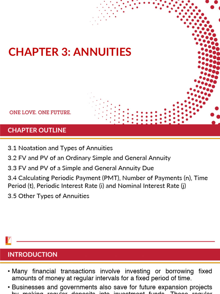 3.2 FV AND PV OF AN ORDINARY SIMPLE AND GENERAL ANNUITY