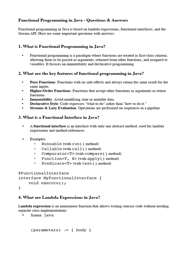 Functional programming in Java is based on lambda expressions, functional interfaces, and the