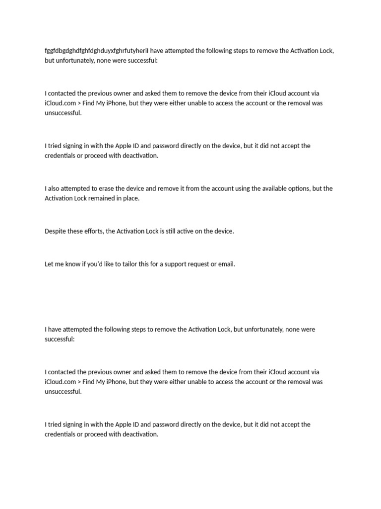 fggfdbgdghdfghfdghduyxfghrfutyheriI have attempted the following steps to remove the Activation Lock,