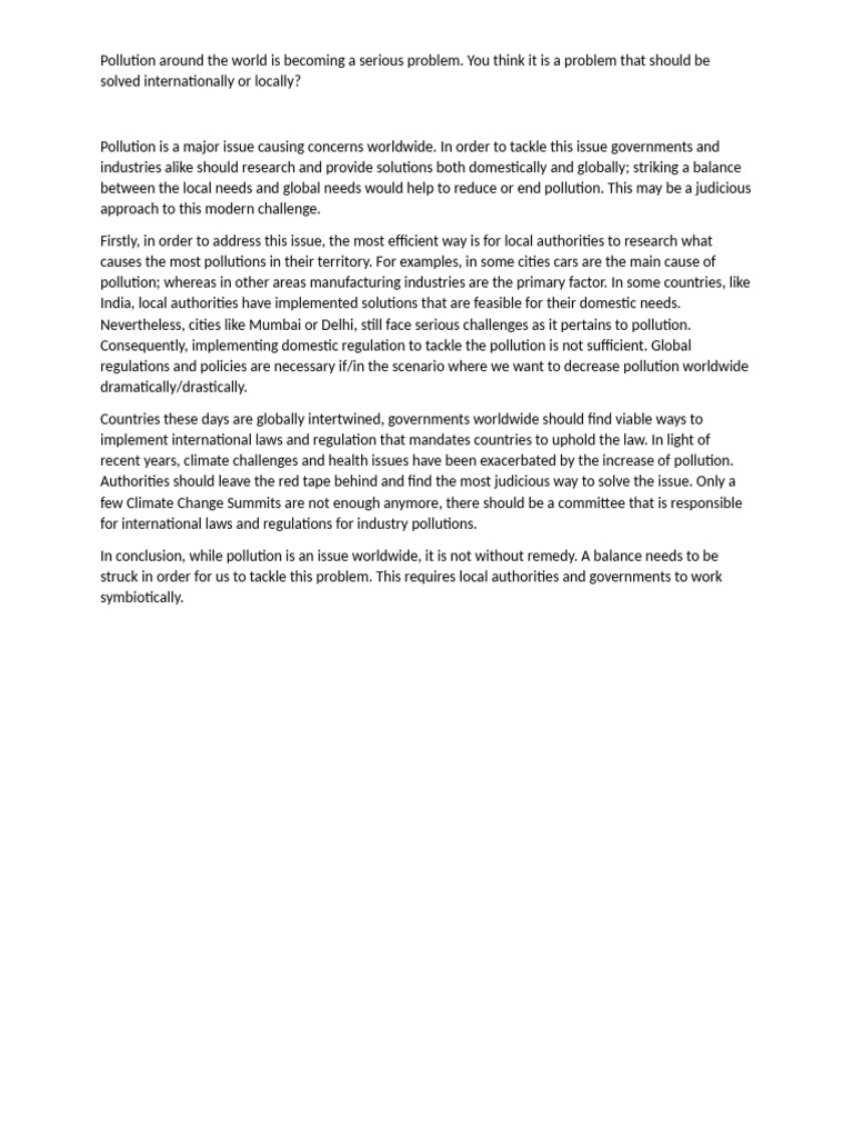 between the local needs and global needs would help to reduce or end pollution. This may be a judicious
