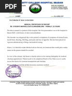 This medical certificate is issued based on the clinical evaluation, medical history, and diagnostic evidence presented during the patient’s consultation. It is intended