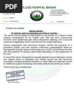 supervision, underwent laparoscopic surgery for an ovarian cyst in January 2025.