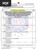 a) To parse the source program into the basic elements or tokens of the language. b) To build a literal table and an identifier table c) To build an uniform symbol table d) All of these 292. Which is the permanent database in the general model of a compiler? a) literal table b) Identifier table c) terminal table d) reductions 293. An ideal compiler should a) Be smaller in size and take less time for compiling b) Be written in a high level language c) Produce object code that is smaller in size and executes faster d) All the above 294. Semantic errors can be detected a) at compile time only c) both at compile time and at run time 295. Type checker checks for a) incompatible operand c) uniqueness of the object