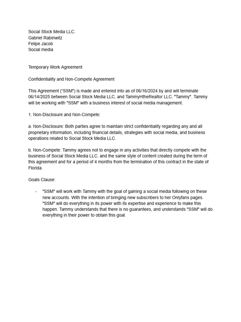 06/14/2025 between Social Stock Media LLC. and TammyHtheRealtor LLC. "Tammy". Tammy