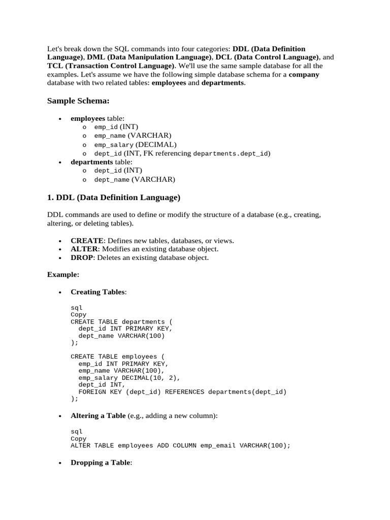 Summary of DDL, DML, DCL, and TCL Commands