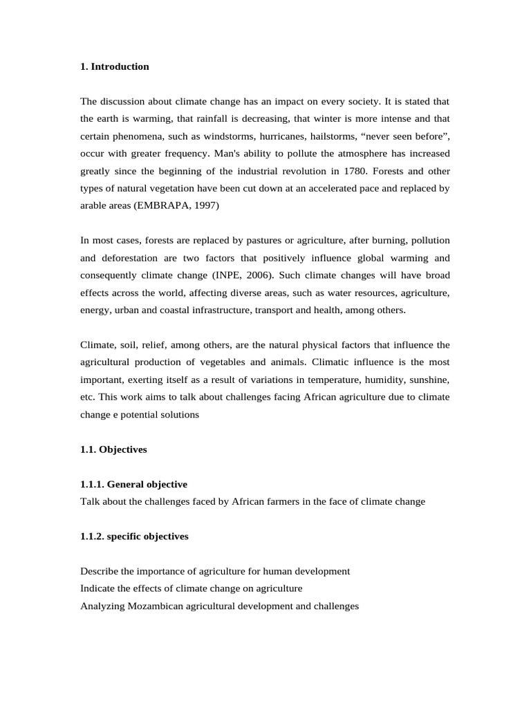etc. This work aims to talk about challenges facing African agriculture due to climate