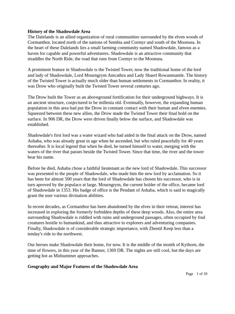 the heart of these Dalelands lies a small farming community named Shadowdale, famous as a