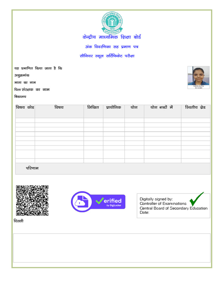 1. This mark sheet is generated by DigiLocker (https://digilocker.gov.in) directly from CBSE’s Database.