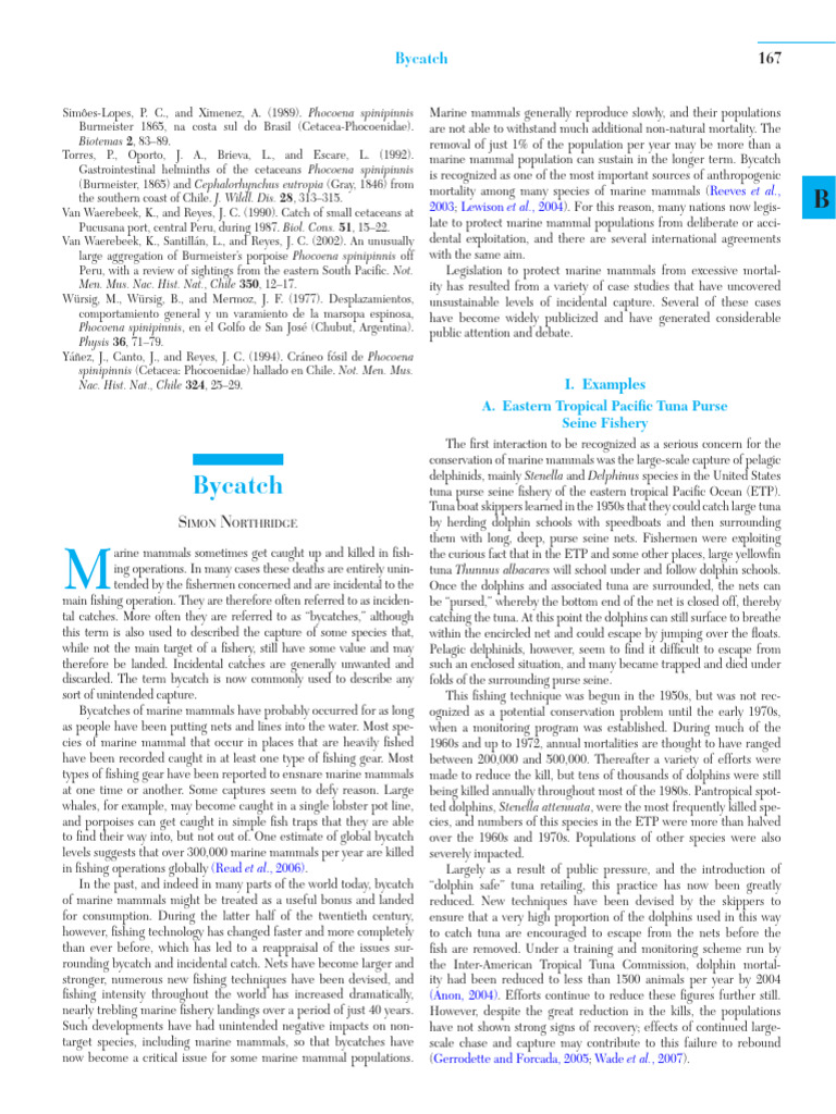 Van Waerebeek, K., and Reyes, J. C. (1990). Catch of small cetaceans at 2003; Lewison et al., 2004). For this reason, many nations now legis- B