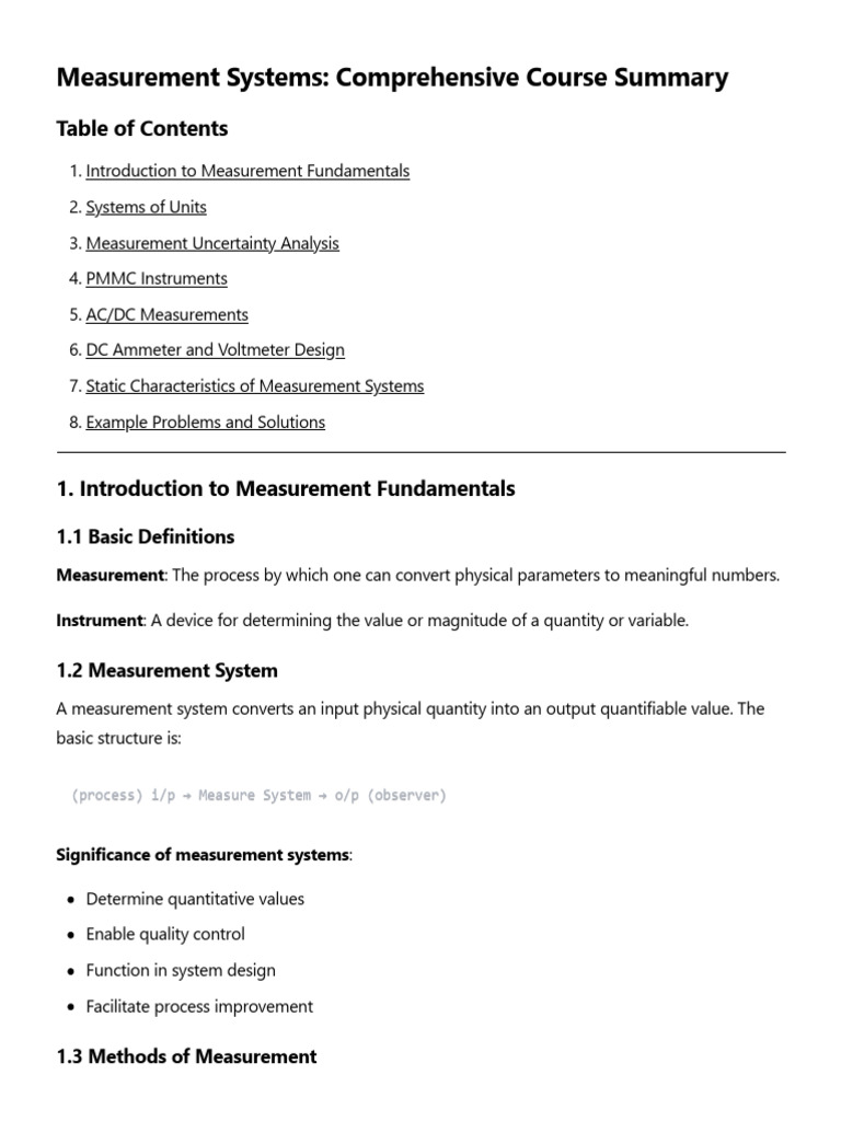Measurement Systems: Comprehensive Course Summary