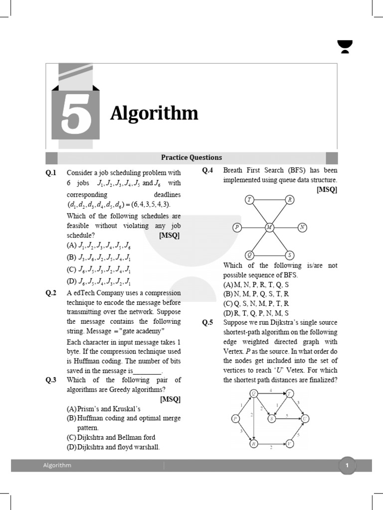 Q.1 Consider a job scheduling problem with Q.4 Breath First Search (BFS) has been