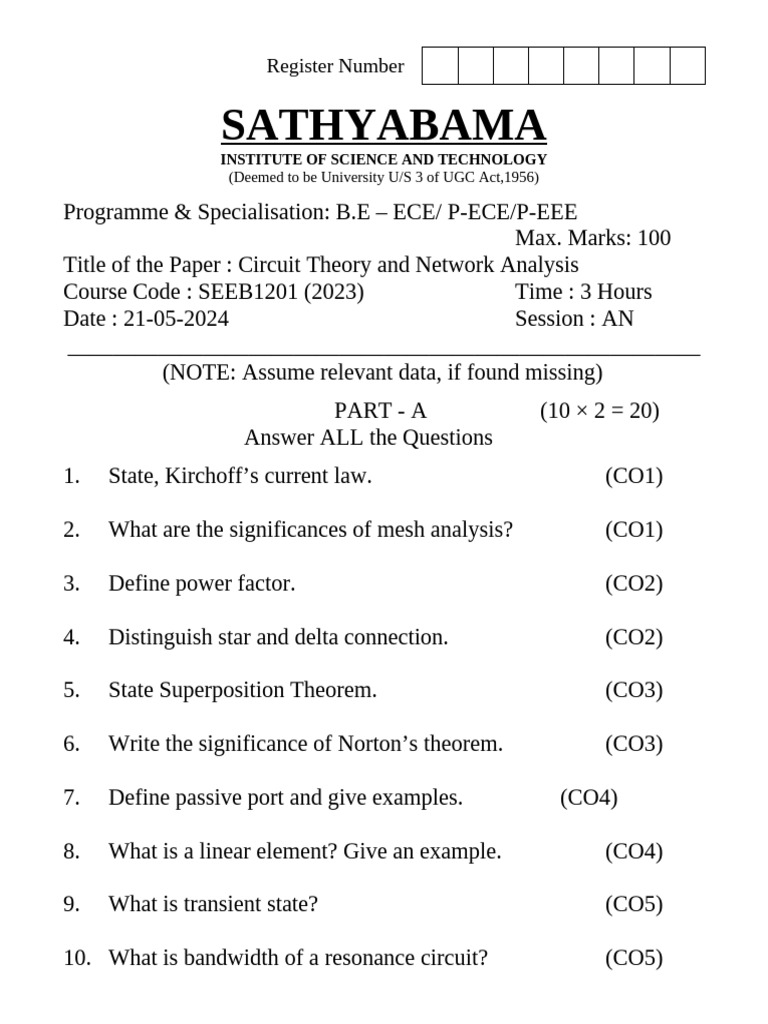 Title of the Paper : Circuit Theory and Network Analysis