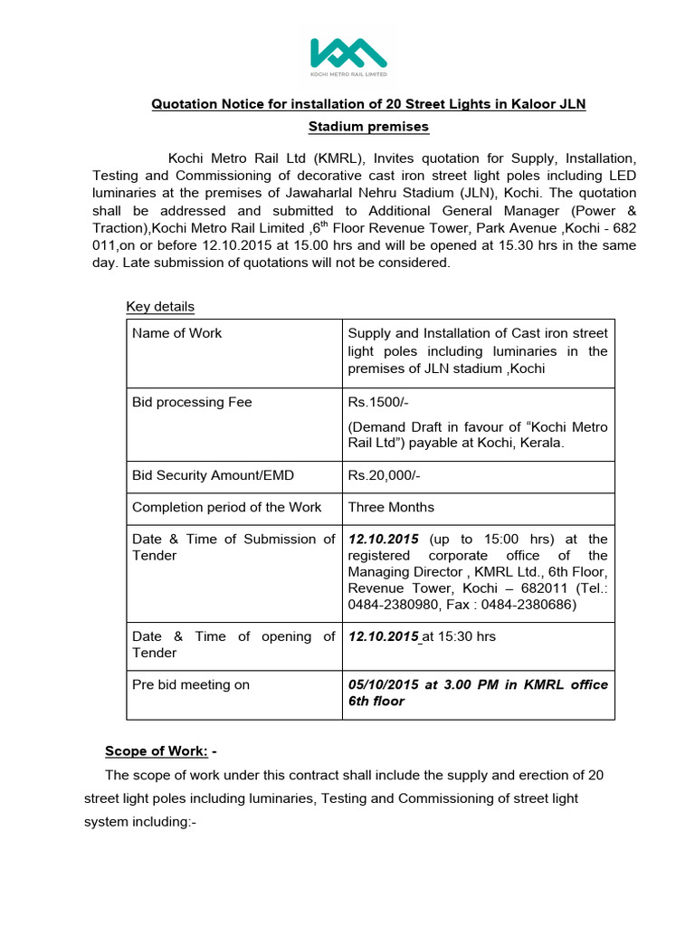 Quotation Notice for installation of 20 Street Lights in Kaloor JLN