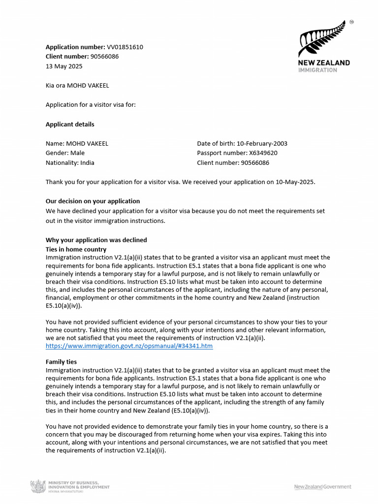 Thank you for your application for a visitor visa. We received your application on 10-May-2025.
