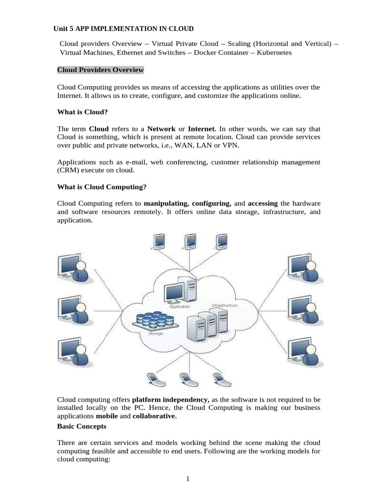 Cloud providers Overview – Virtual Private Cloud – Scaling (Horizontal and Vertical) –