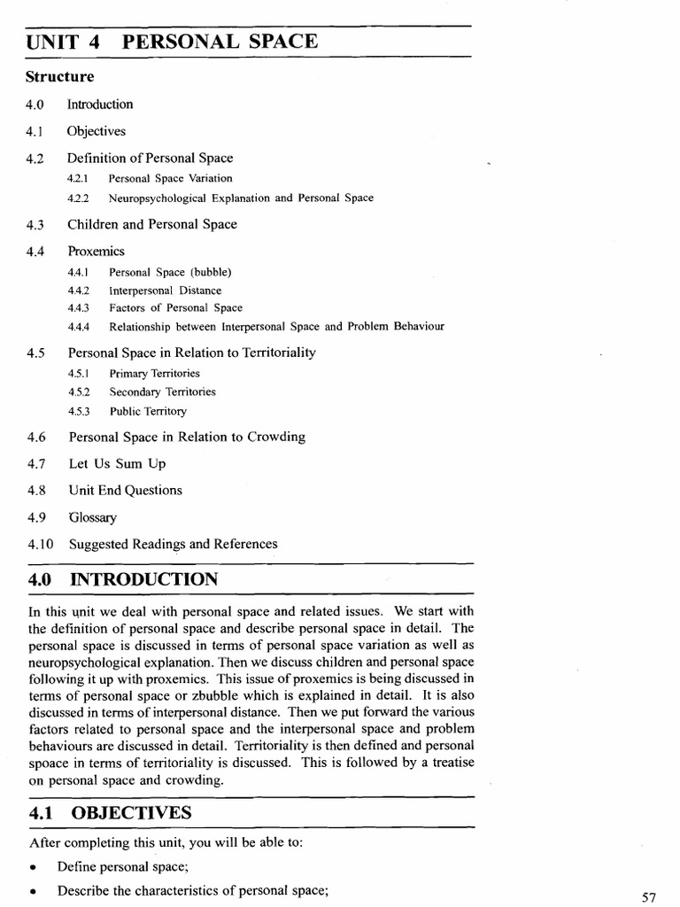 In this unit we deal with personal space and related issues. We start with