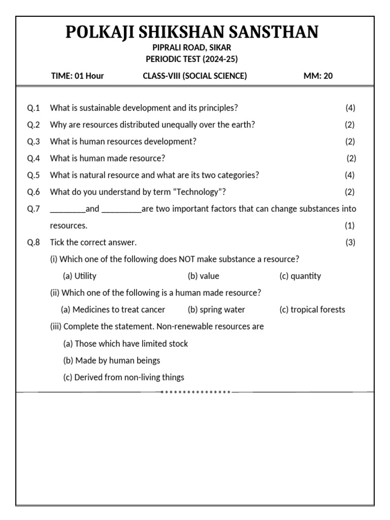 TIME: 01 Hour CLASS-VIII (SOCIAL SCIENCE) MM: 20