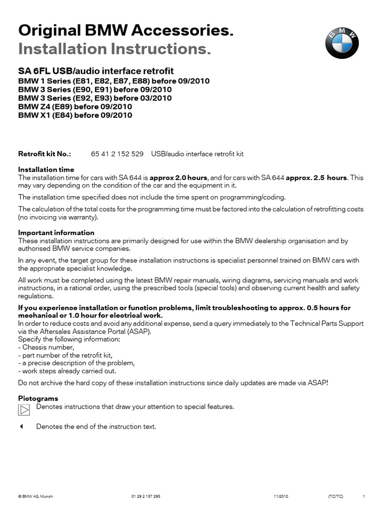 In any event, the target group for these installation instructions is specialist personnel trained on BMW cars with