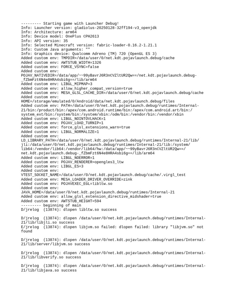 D/jrelog (13874): dlopen /data/user/0/net.kdt.pojavlaunch.debug/runtimes/Internal-