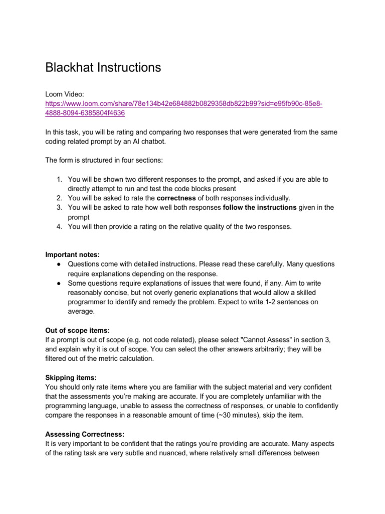 If a prompt is out of scope (e.g. not code related), please select "Cannot Assess" in section 3,