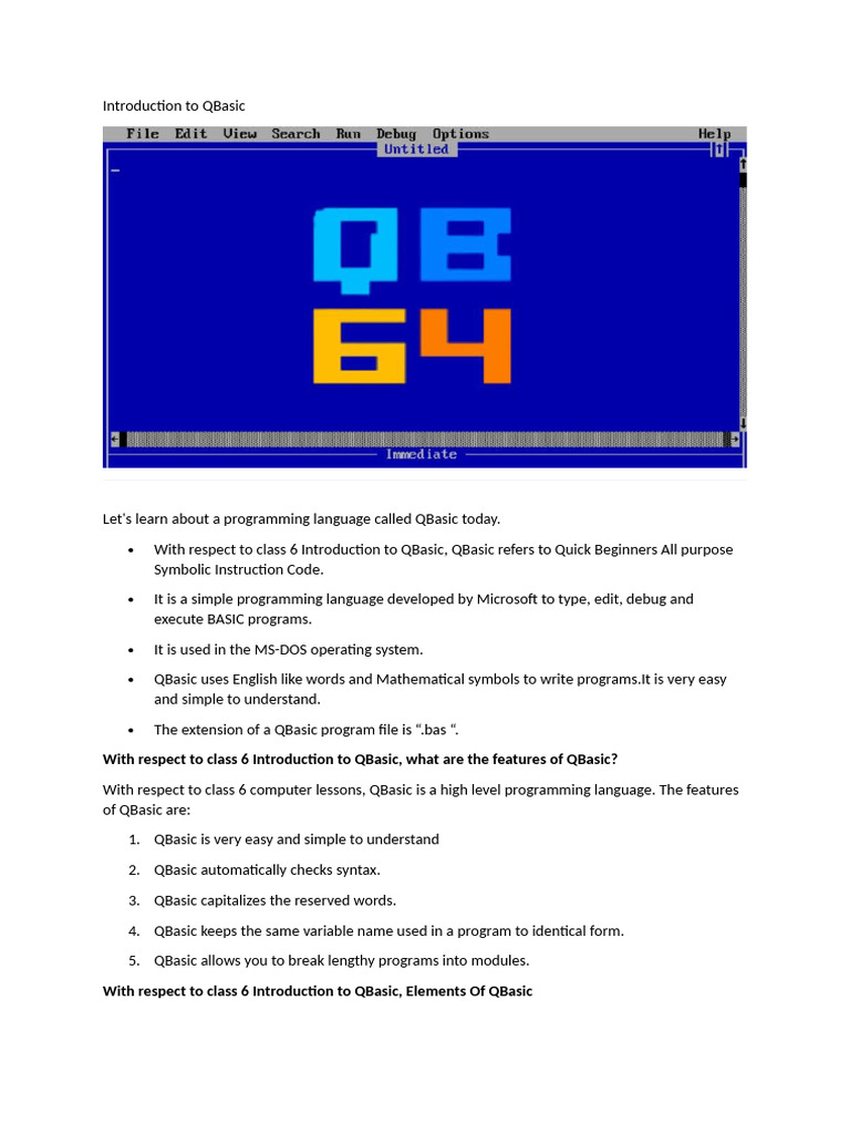 With respect to class 6 Introduction to QBasic, Elements Of QBasic