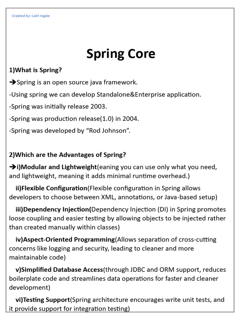 2)Which are the Advantages of Spring?