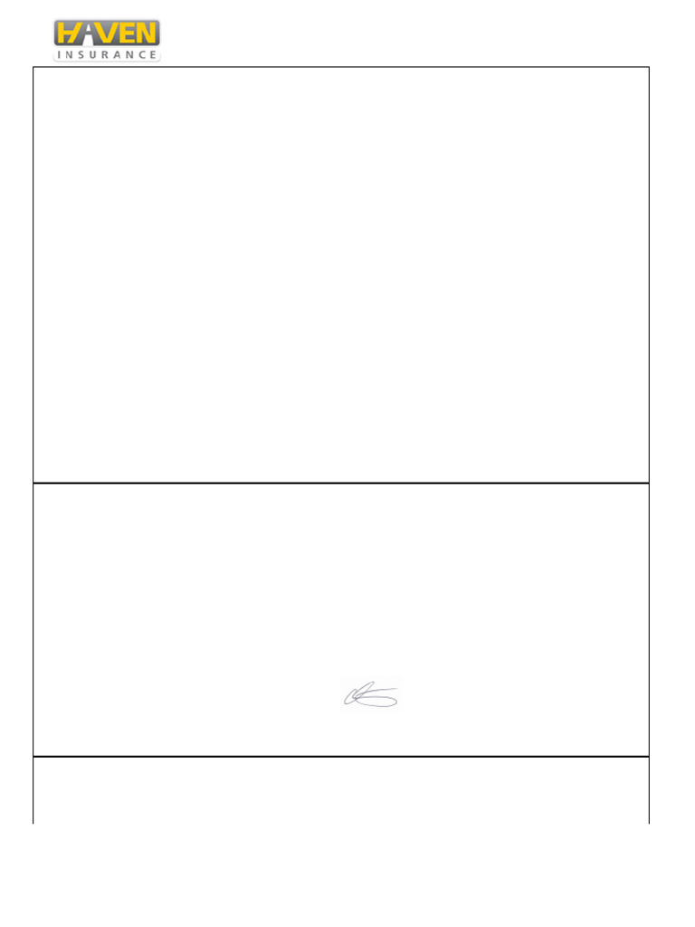 for 30 days or more and the recovery is explicitly authorised by us. Haven Insurance Company Limted