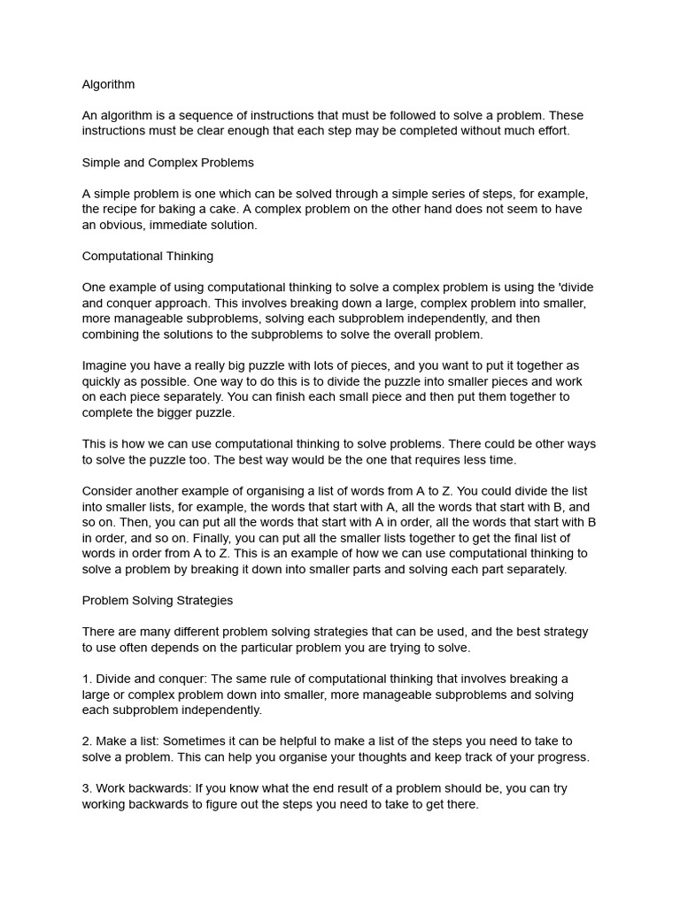 the recipe for baking a cake. A complex problem on the other hand does not seem to have