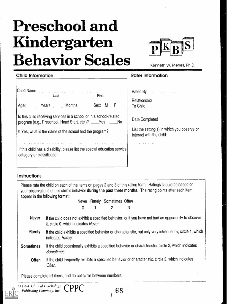 Additional copies of the Preschool and Kindergarten Behavior Scales can be purchased from