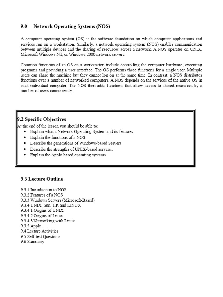 between multiple devices and the sharing of resources across a network. A NOS operates on UNIX,