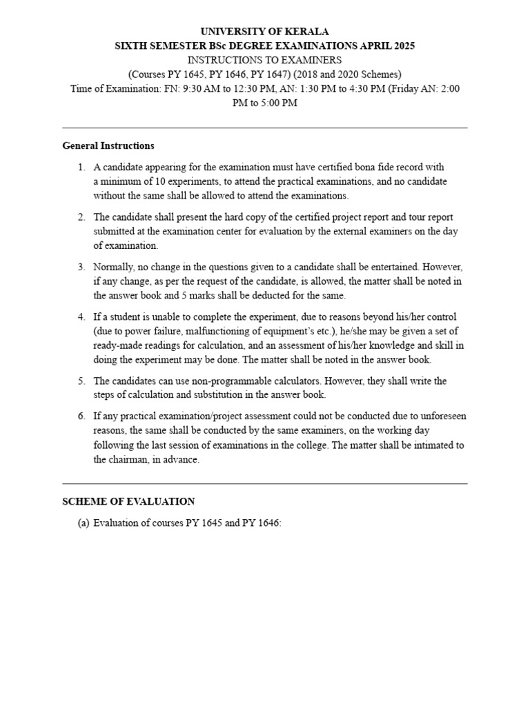 (Courses PY 1645, PY 1646, PY 1647) (2018 and 2020 Schemes)