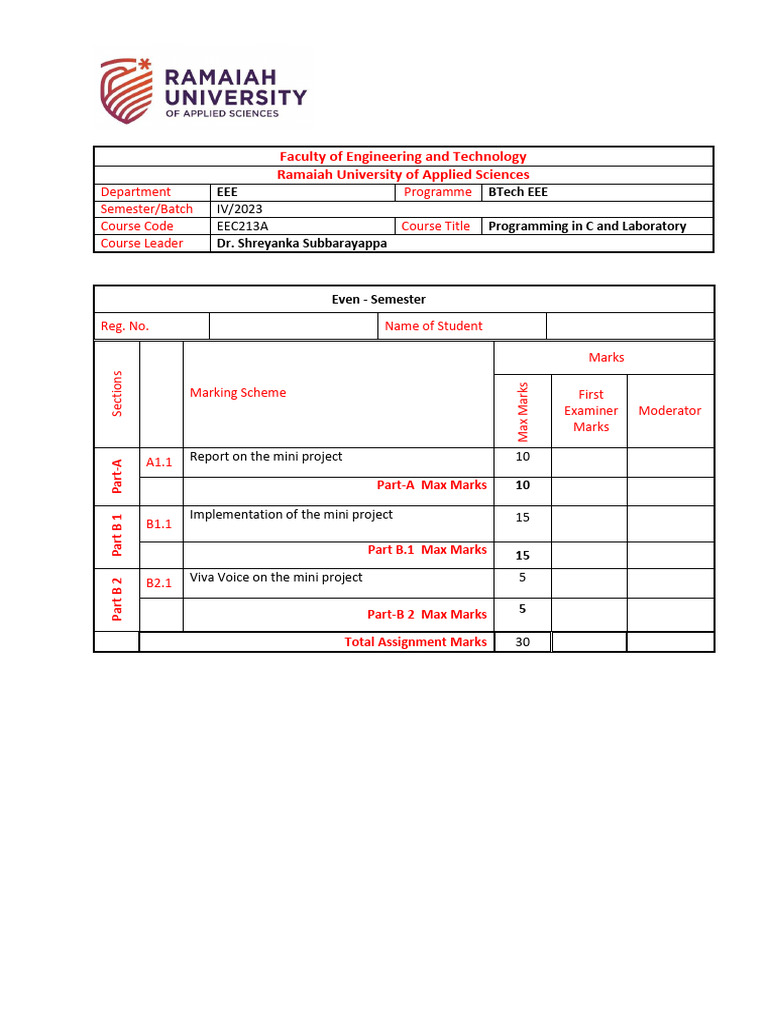 Course Code EEC213A Course Title Programming in C and Laboratory