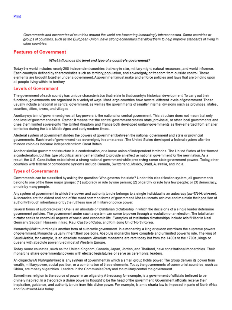 3. Identifying What influences the level and type of a country’s government?