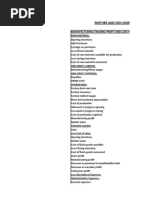 Particulars Direct Materials: Opening stock Purchase Carriage inwards Less : Closing stock Direct materials consumed Add Direct wages Direct expenses Prime cost Add: Factory Overheads: Indirect materials Indirect wages Rent (factory) Lighting and heating Power and fuel Repairs and maintenance Cleaning Drawing office expenses Cost of research and experiments Depreciation of factory plant Work stationary Insurance- fixed asset Stock and finished goods Welfare service expenses Loose tools Factory manager salary Factory Cost Add: Office and Administrative overheads Rents (office) Salaries Lightning and heating Insurance Cleaning Telephone and postage Printing and stationary