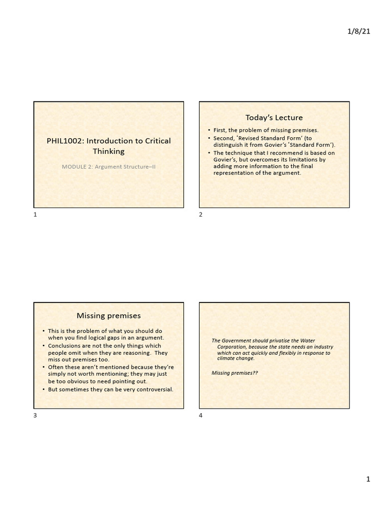 PHIL1002: Introduction to Critical distinguish it from Govier’s‘Standard Form’).