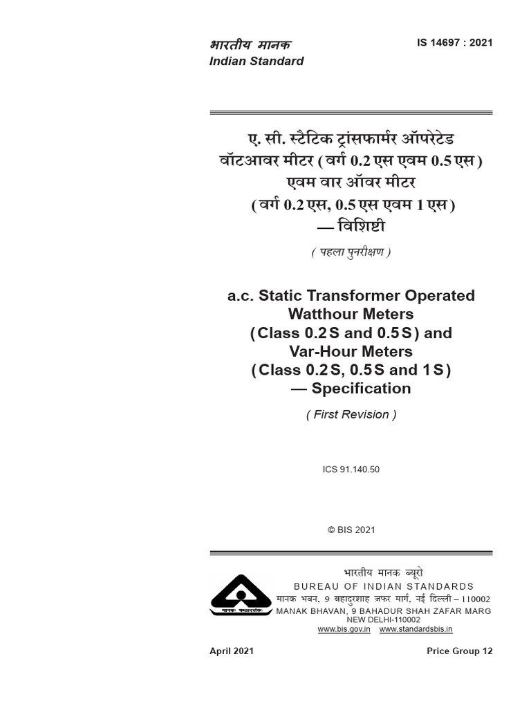 and 2 are covered in Indian Standard IS 13779 : 2020 ‘a.c. static watthour meters, Class 1 and 2 – Specification