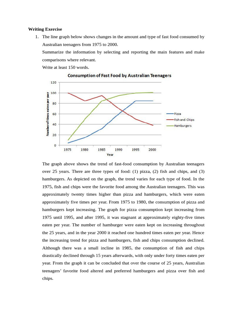 1. The line graph below shows changes in the amount and type of fast food consumed by